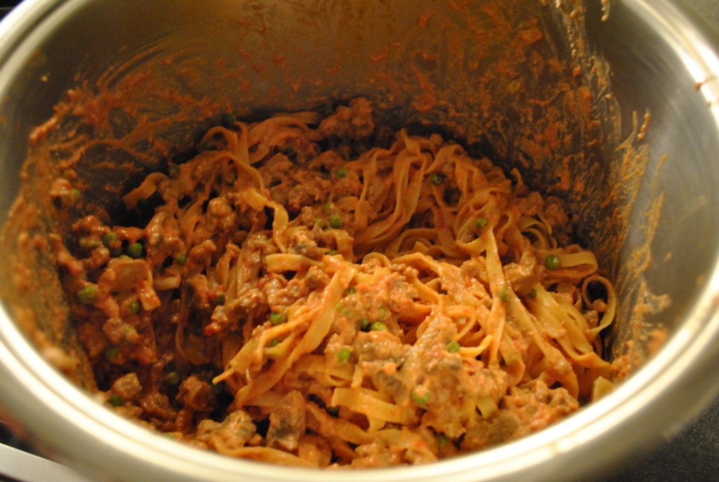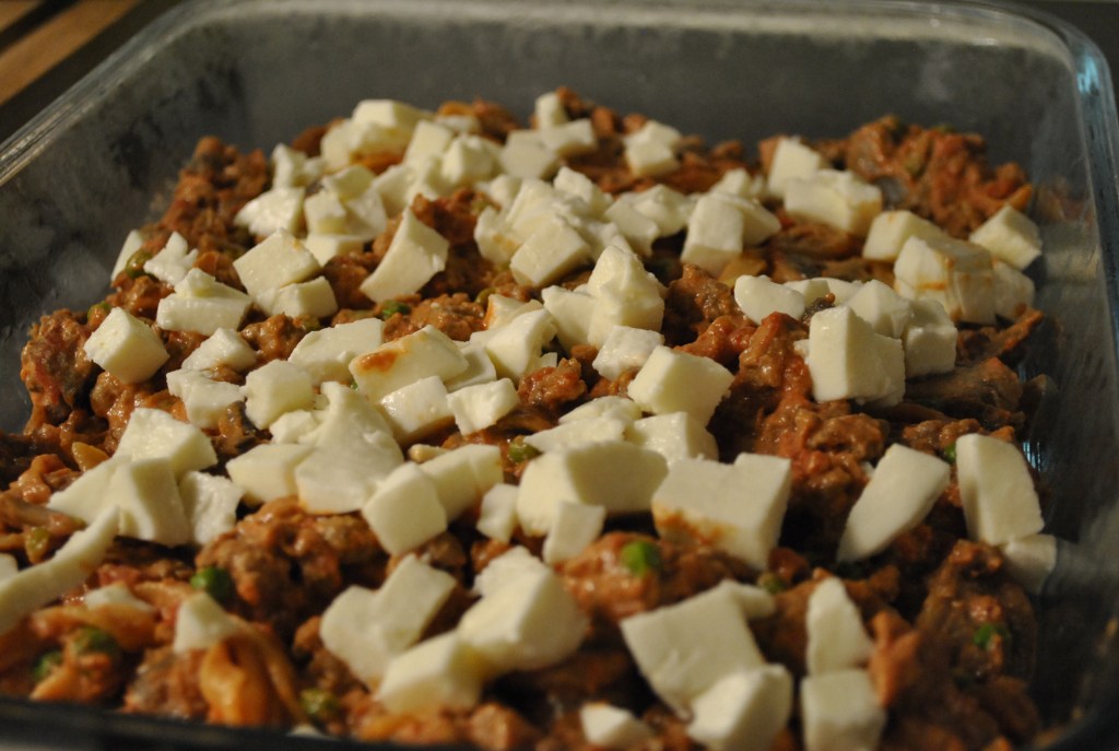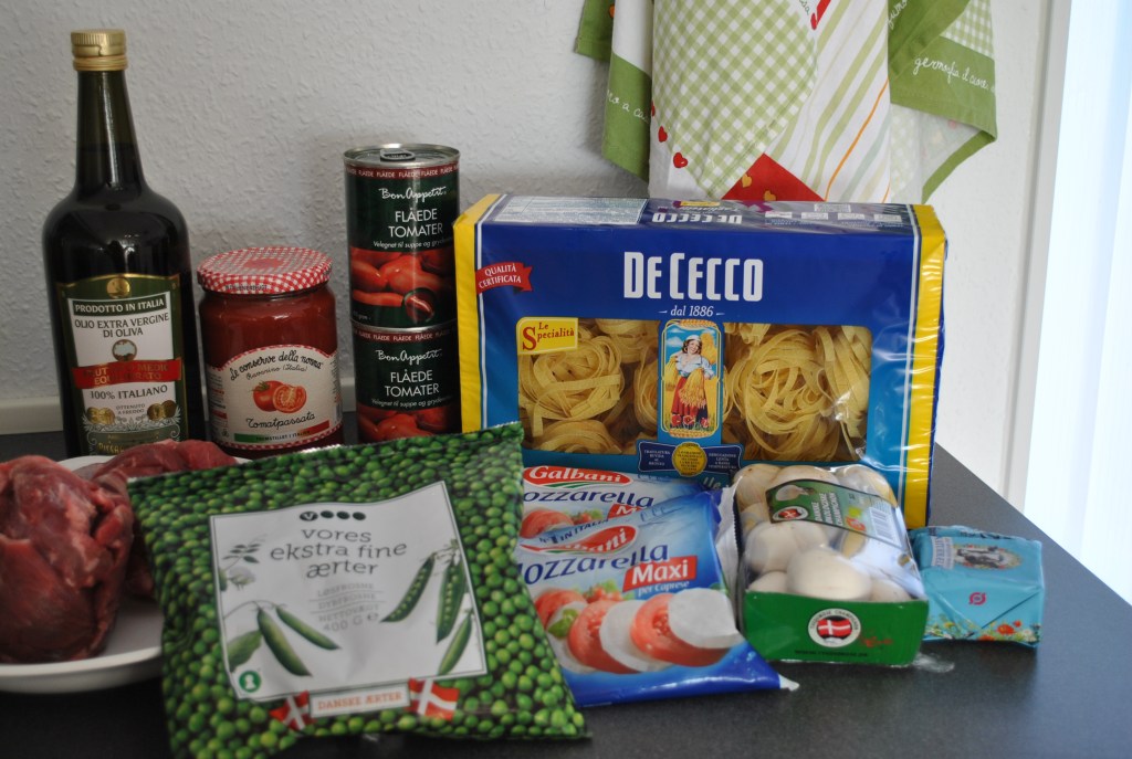 Kog tagliatellen halvvejs gennem kogningen i saltet vand. Dræn dem og bland dem sammen med farsblandingen i en større gryde. Form derefter et lag krydret tagliatelle i en bageform, læg mozzarella i tern; dæk med et andet lag pasta; mozzarella og bages i 30 minutter ved 180 grader.
